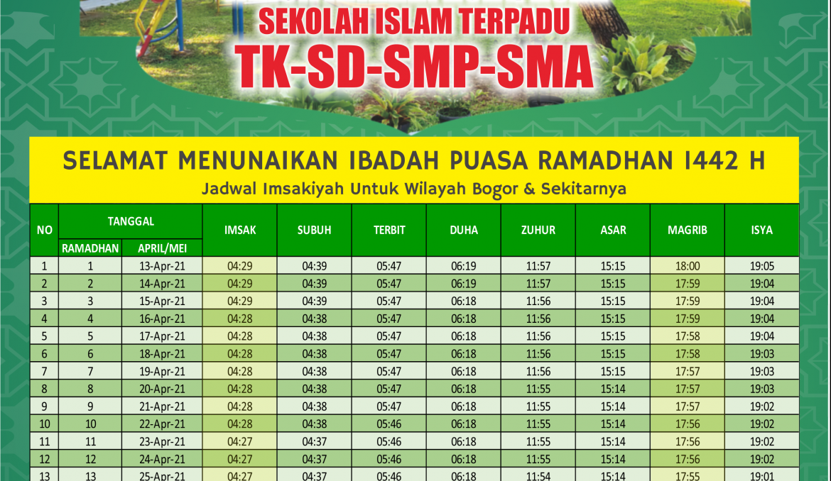 Berikut merupakan link download “JADWAL IMSAKIYAH RAMADHAN 1442 H” SIT BBS.