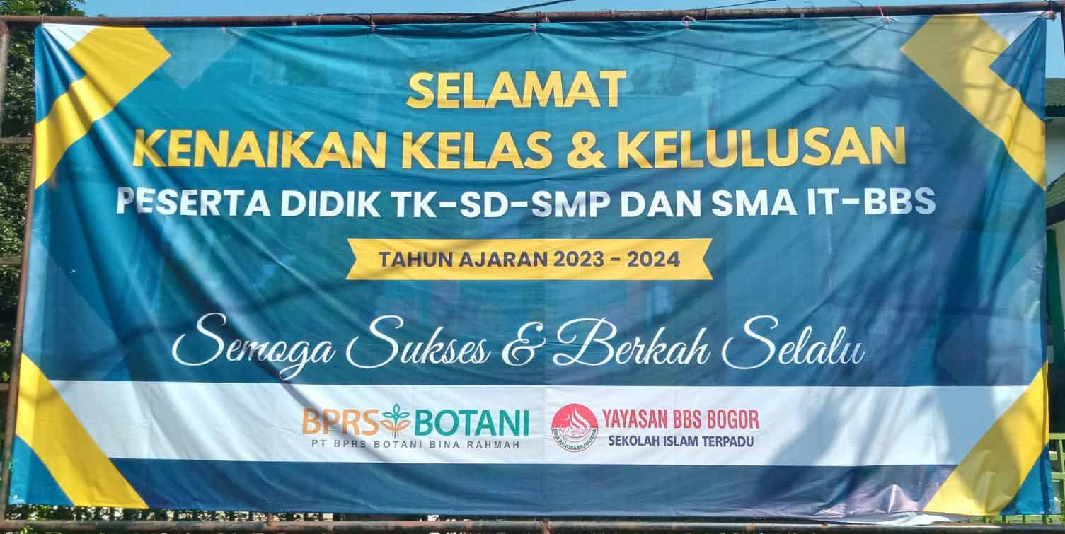 Bogor, 28 Juni 2024 - Sudah menjadi tradisi ditiap akhir Tahun Ajaran yang di nanti ialah moment Kelulusan dan Kenaikan Kelas. Di Tahun Ajaran 2023/2024 ini SIT Bina Bangsa Sejahtera telah meluluskan Para Peserta Didik TKIT Al Hikmah BBS, SD IT BBS, SMP IT BBS dan SMA IT BBS dan otomatis para peseta didik angkatan dibawahnya naik kelas di tahun ajaran mendatang.