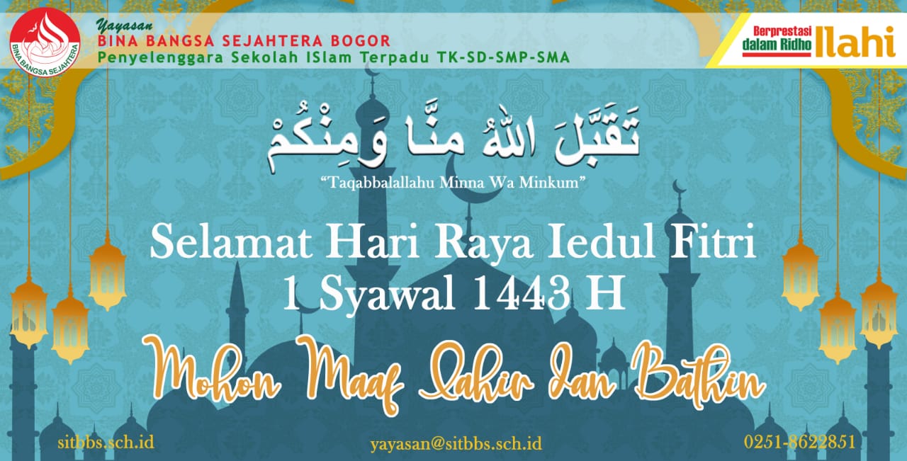 Kamis, 11 Mei 2022 Yayasan Bina Bangsa Sejahtera mengadakan Halal bihalal yang mencakup seluruh unit pendidikan di lingkungan YBBS, mulai dari TK, SD, SMP dan SMA.