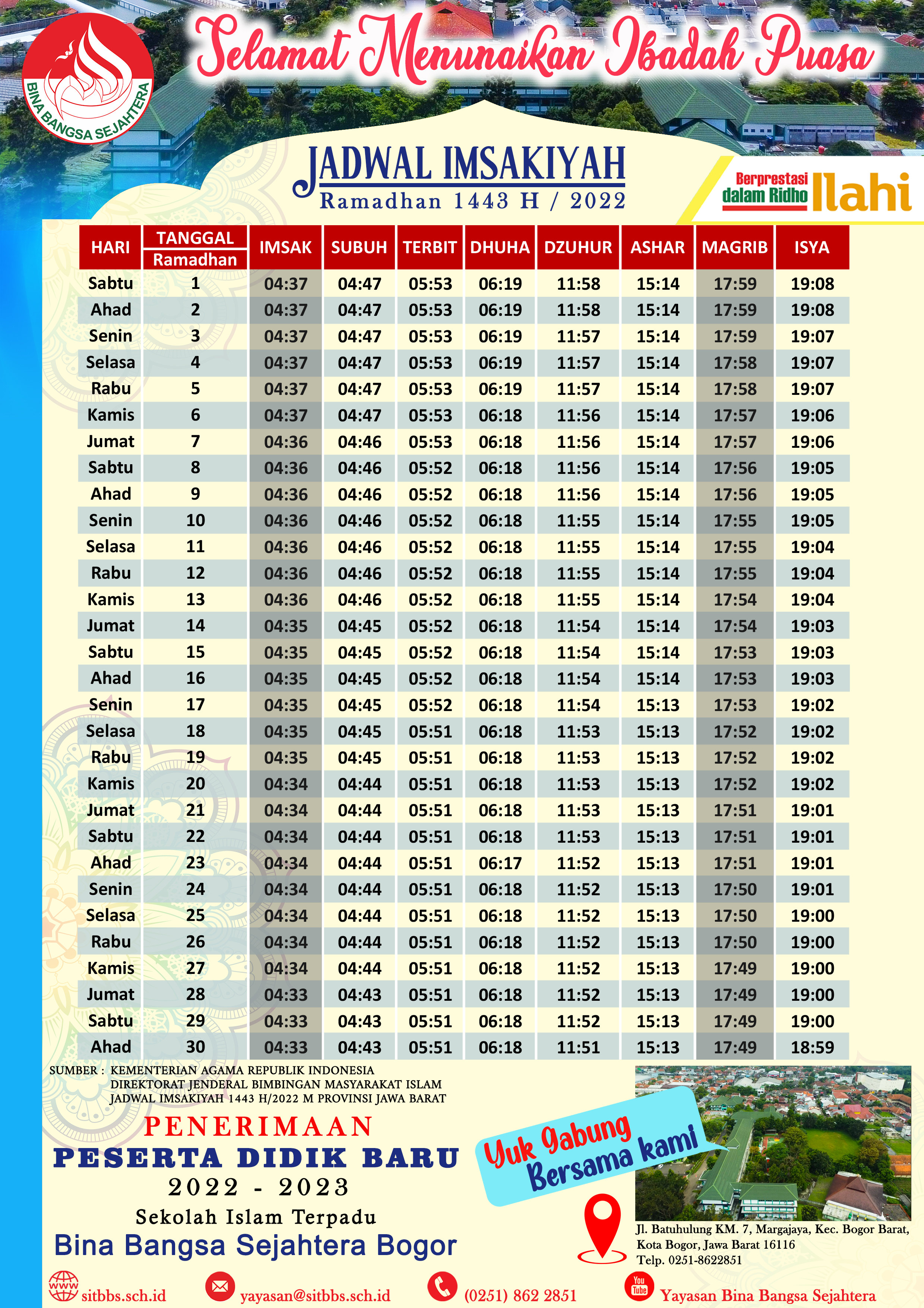 Silakan unduh JADWAL IMSAKIYAH Ramadhan 1443 H
